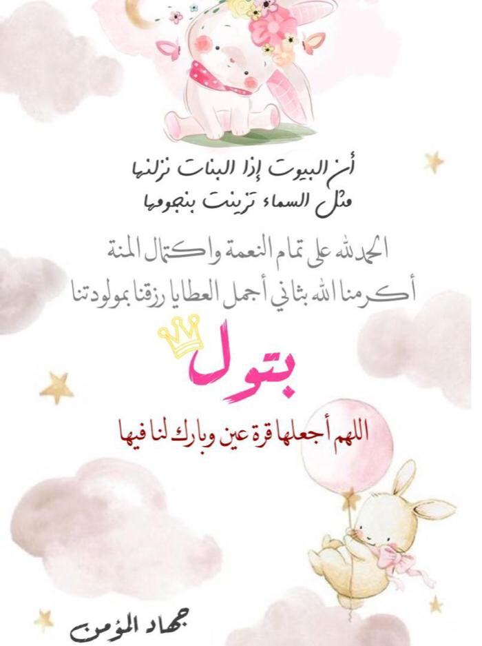أسرة ”جهينة الإخبارية“ تبارك للمؤمن على المولودة جعلها الله من مواليد السعادة واقر الله به عين والديها.