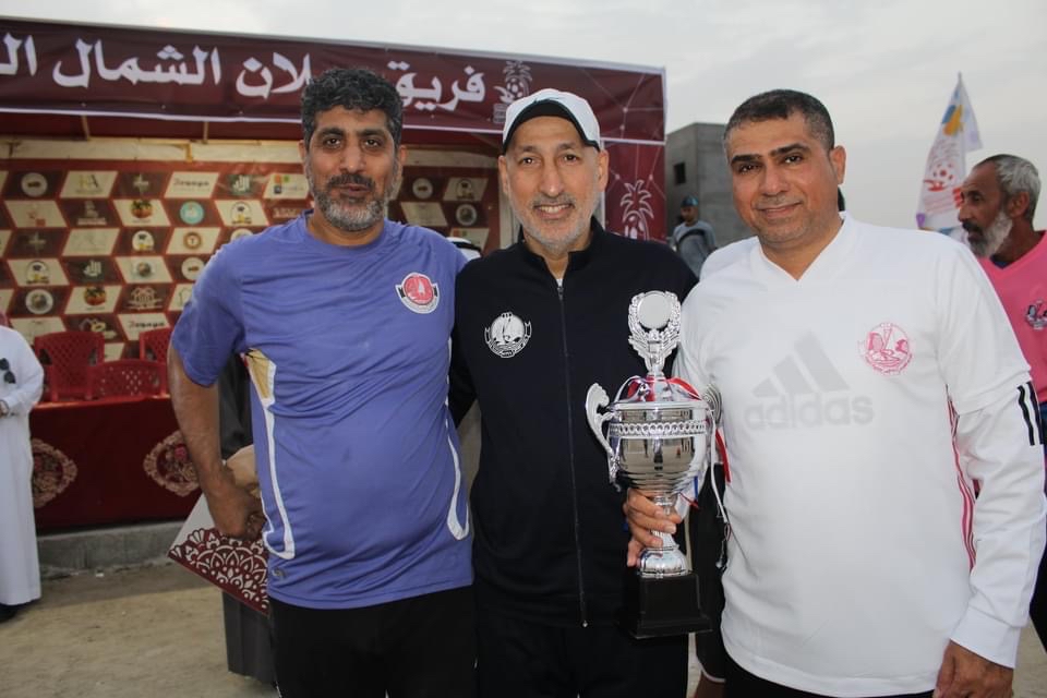 وفي الختام تم تويج عميد لاعبيين الحواري حميد القطري لحصول فريقه على كأس المباراة الاستعراضية جميع اللاعبين القدامى، وشكر الاعبيين والرموز الرياضية لتقديرهم على تلبية الدعوة والمشاركة في هذه المباراة.
