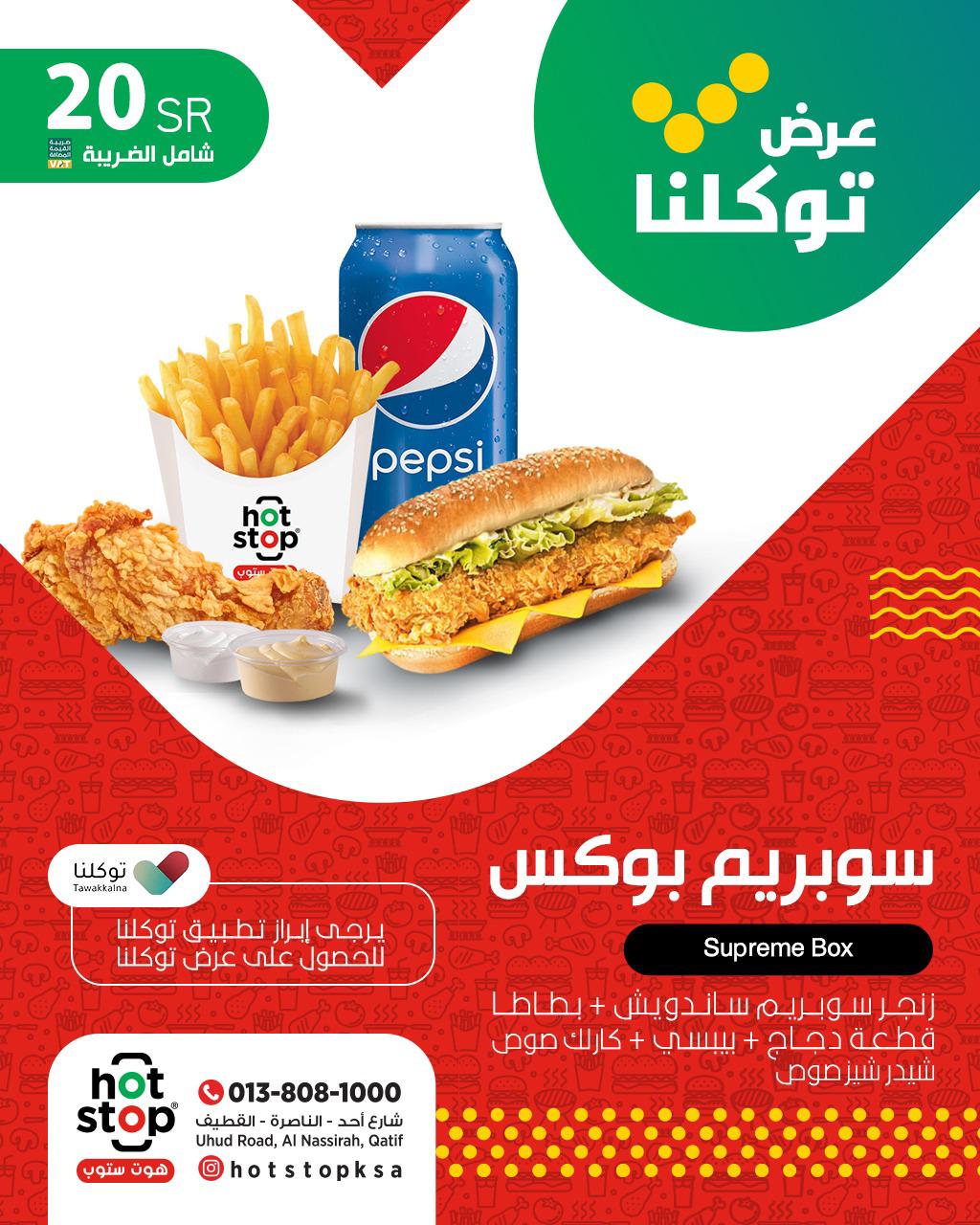 مطعم هوت ستوب للوجبات السريعة يقدم ”عرض توكلنا“