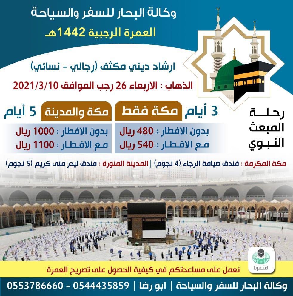 🕋وكالة البحار تعلن عن أخر المقاعد لرحلة الاسراء والمعراج 🕋