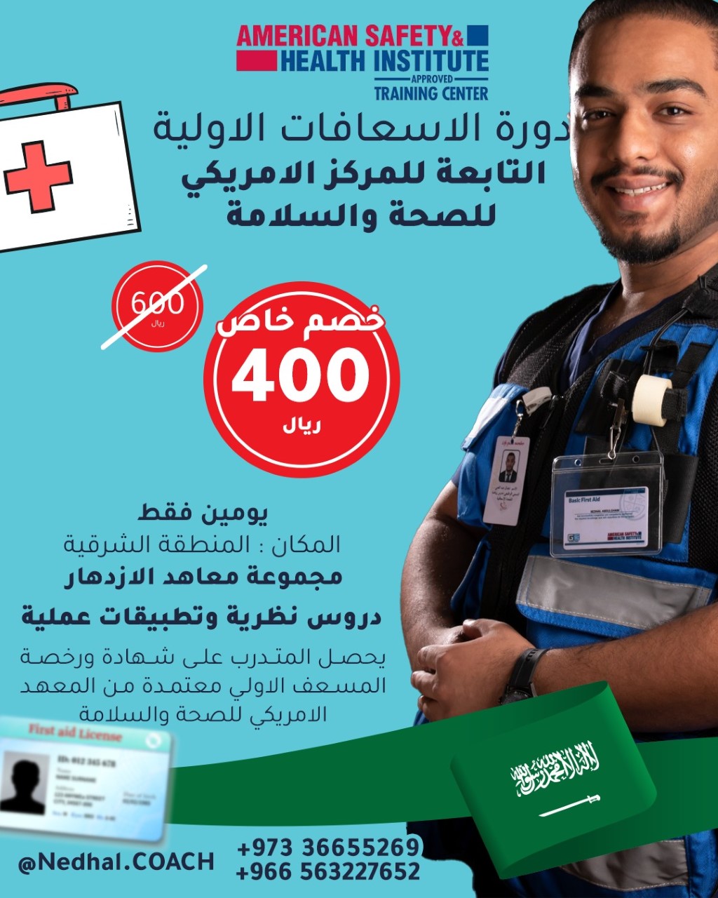 ✳️ انضم لدورة الإسعافات الأولية التابعة للمركز الأمريكي للصحة والسلامة واحصل على خصم خاص لتسجيلك خلال يومين