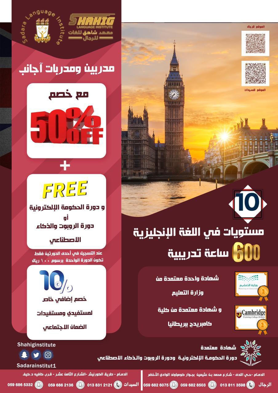 + دورة مجانية معتمدة من المؤسسة العامة للتدريب التقني والمهني وحسب اختيارك