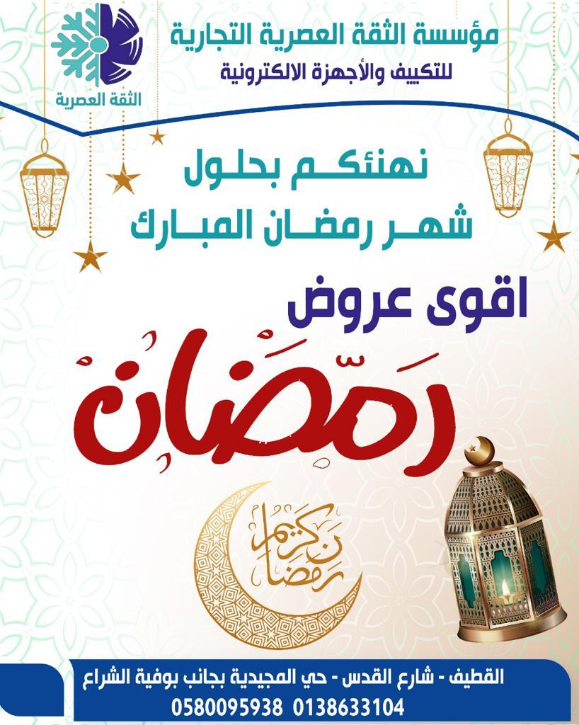 أقوى عروض شهر رمضان المبارك في مؤسسة الثقة العصرية للتكييف والأجهزة الإلكترونية