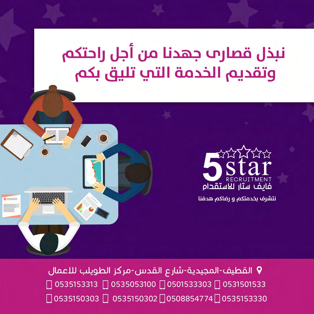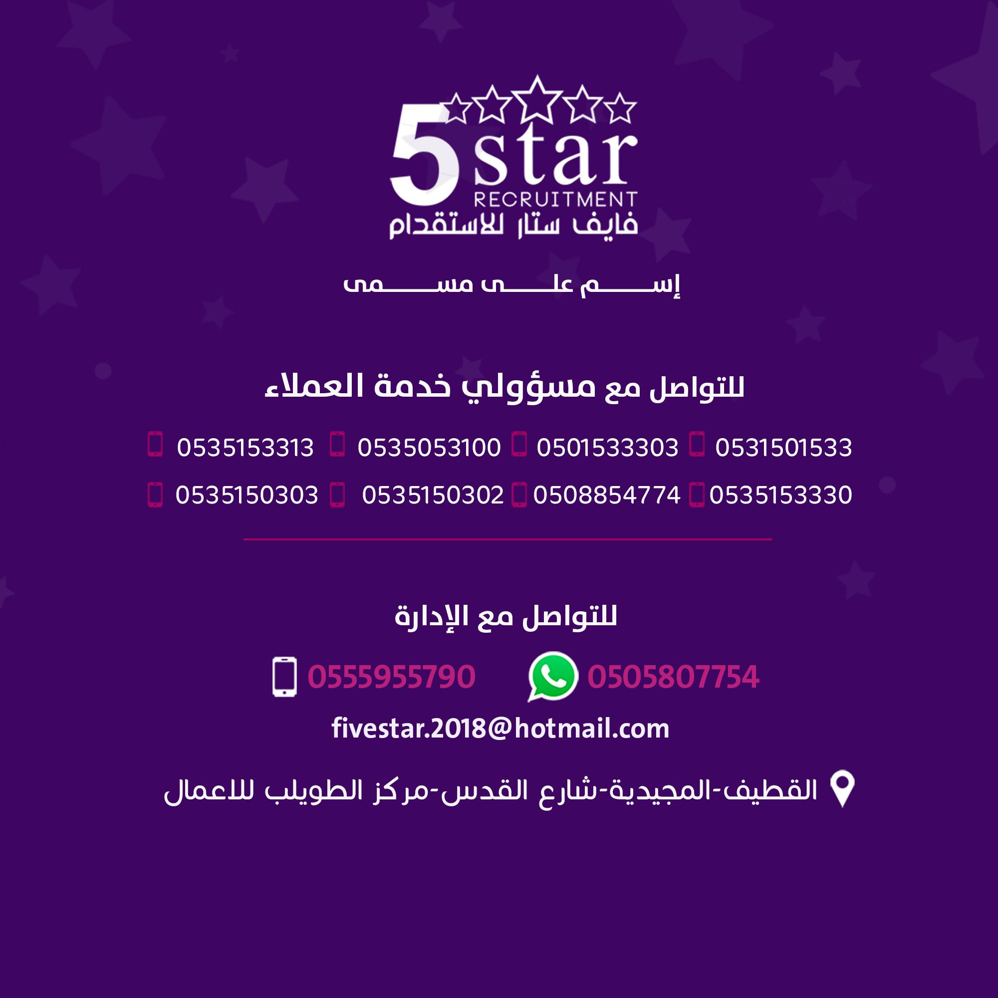 شاهد التميز وتعرف أكثر على فايف ستار للاستقدام
