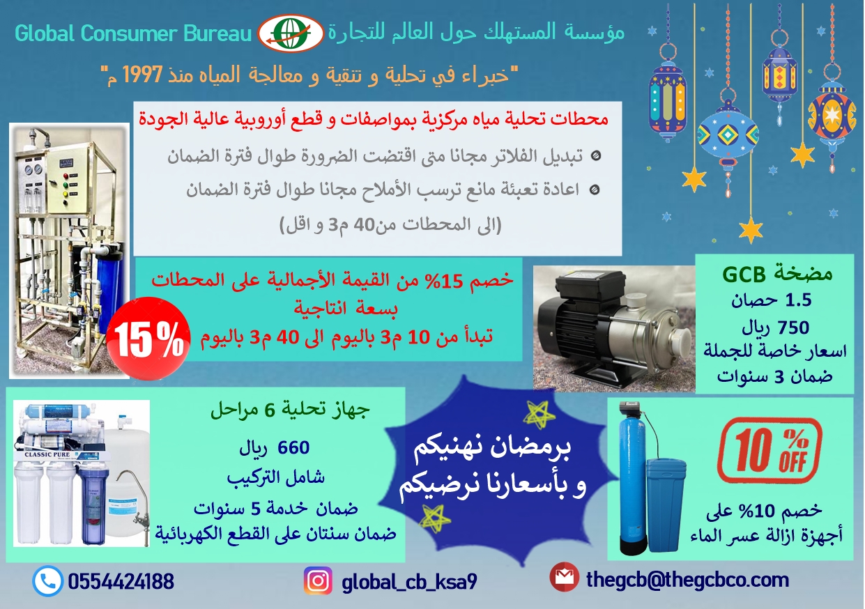 عروض شهر الخير لدى ”مؤسسة المستهلك حول العالم لتحلية المياه“