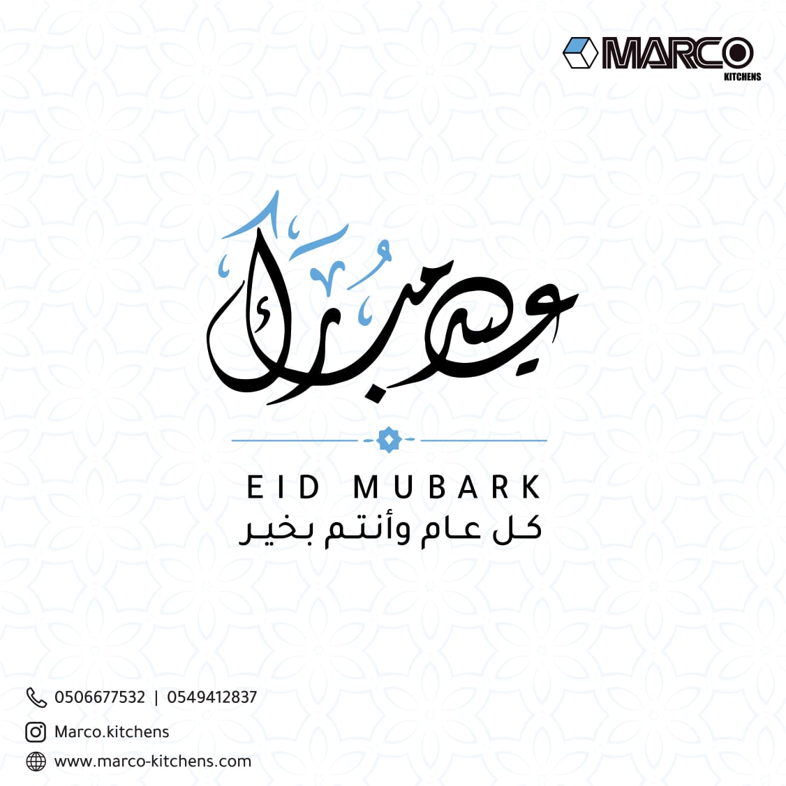 مطابخ ماركو من ”شركة ميرزا الجشي“ تهنئكم بالعيد المبارك اعاده الله علينا وعليكم باليمن والبركات.