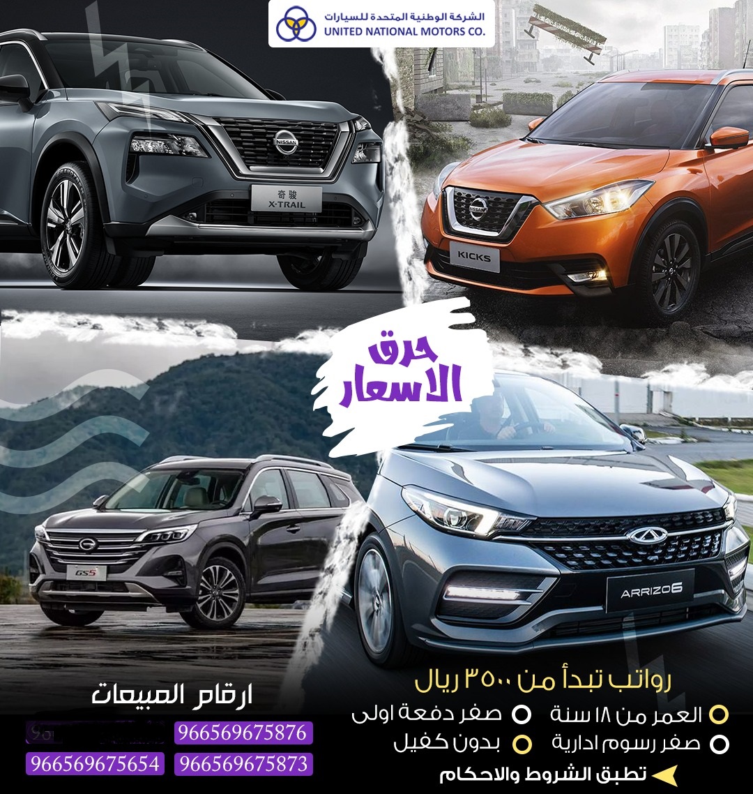 تقدم الشركه الوطنيه المتحده للسيارات عروضها على السيارات 🚘🚘 على الكاش ونظام التأجير المنتهي بالتمليك وعروضنا كالتالي