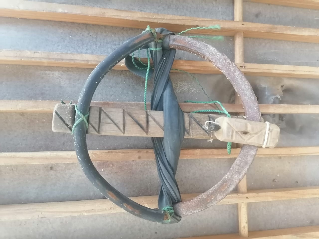 * الوتر، ويؤخذ من الإطار الداخلي المطاطي الذي بداخل العجلات والذي يسمى «التيوب»