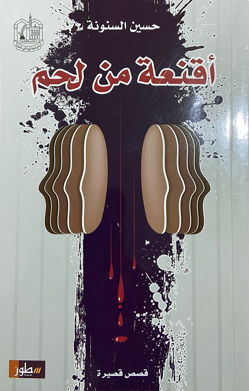 في مجموعته ”أقنعة من لحم“ والتي بين يدي القارئ ليحكم عليها بما شاء، ينسج السنونة بساطا غاليا، تكثر فيه الألوان الجميلة، وتتماوج فيه الخطوط الزاهية، وتنتثر على صفحته قصص وحكايات لأناس نسجوه وأحسنوا النسج والحياكة، أناس كانوا أبطالا أو ما زالوا ينتظرون الفرصة ليكونوا أبطالا في حكايات هي أشبه برسائل إنسانية تعلق في ذهن القارئ وتعيد توجيه تفكيره، لقد انتظمت القصص على شكل حياة مرسومة وناضجة، فأسماء القصص التي بدت عتبات لاذعة لكل من يدخل من تحتها جاءت هي الأخرى مختزلة وناضجة ومستفزة: ”اشتاق للعناق فأستيقظ“، ”أقنعة من لحم“، ”ملك الموت لا يتكلم العربية“، ”مجرد رسالة من عجوز“، ”صرخة طينية“، ”اشهار جوع“، ”اتصال مائي“، ”فلس... طين“، ”ورد وماء“، ”الوسادة البيضاء“، ”اسمي وأسماؤهم“، ”تقمص“، ”الحب يجب ما قبله“، ”أمي تلعن النجوم“، ”كوري في تاروت“، ”آخرون كانوا هنا“، ”يأكلون الهواء“، ”ترانيم مواطن واقف“.