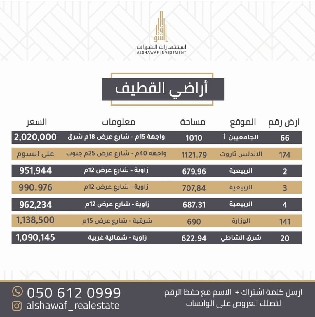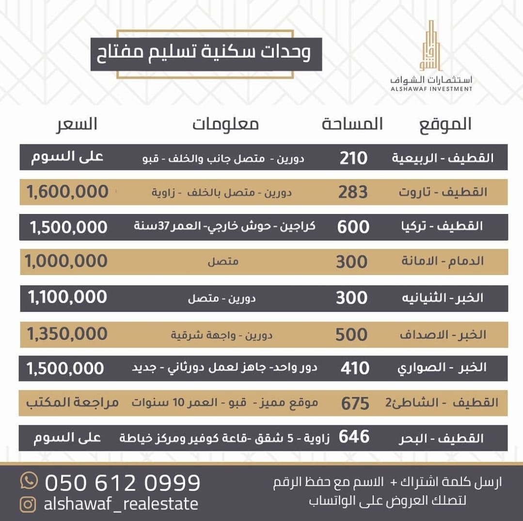 - فريق عمل متكامل لخدمتكم.. للاستفسار والتواصل عبر الواتسب 0506120999