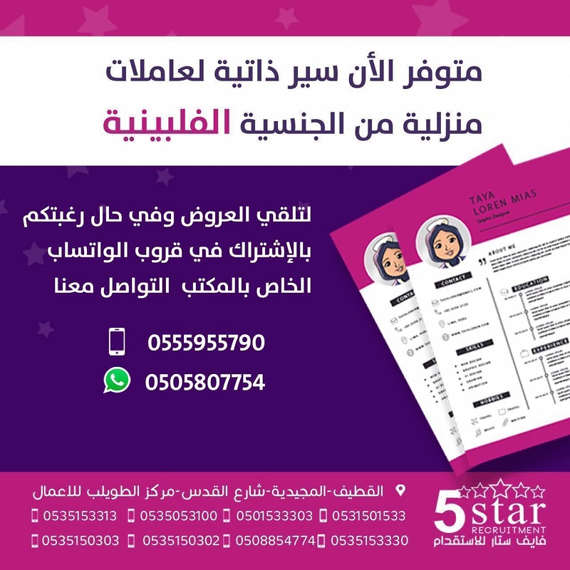 لدى مكتب فايف ستار للاستقدام