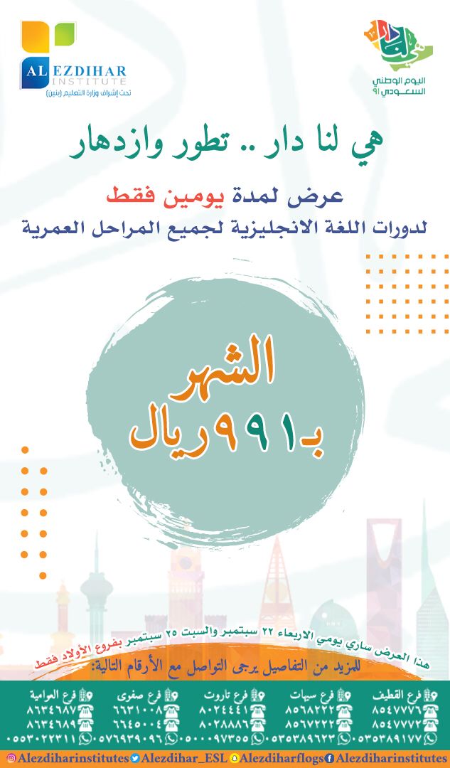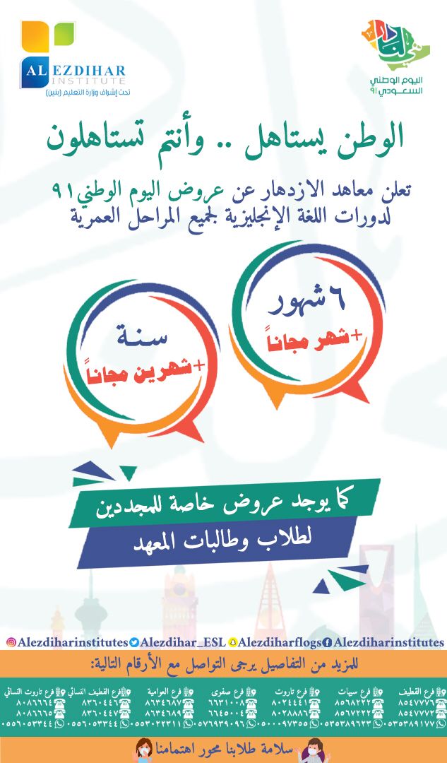 انتهز عروض اليوم الوطني على دورات الإنجليزي من «معاهد الازدهار»