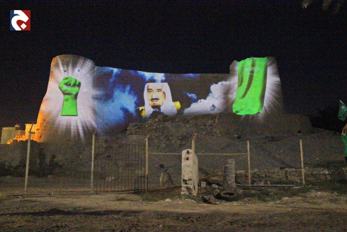 قلعة تاروت تزدان ب ”الأخضر“ احتفالًا باليوم الوطني