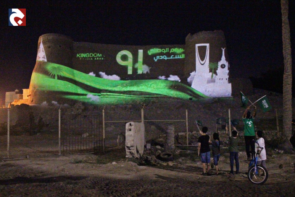 تزينت قلعة تاروت باللون الأخضر، مساء اليوم، وسط مشاركة كثيفة من أهالي القطيف، وذلك ضمن فعاليات الاحتفال باليوم الوطني 91.