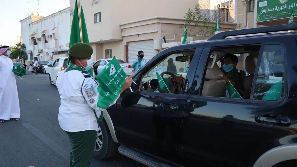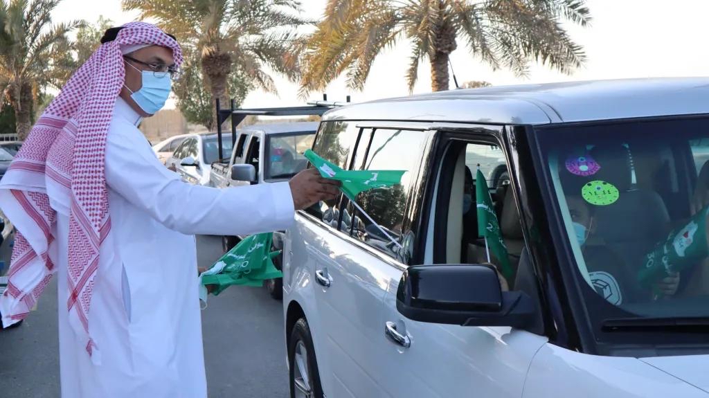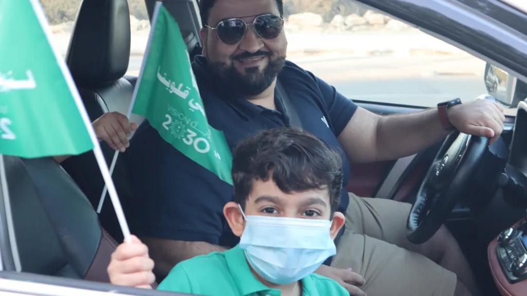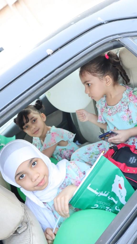 وشهدت الفعالية حضورً الأهالي مع أطفالهم الذين حرصوا على المشاركة في حفل هذا الوطن الغالي وهم بداخل سياراتهم وقد ارتدوا الأوشحة الخضراء ورفعوا الأعلام التي تُعبّر عن حب الوطن وتزيد الشعور بالحماس والوطنية.