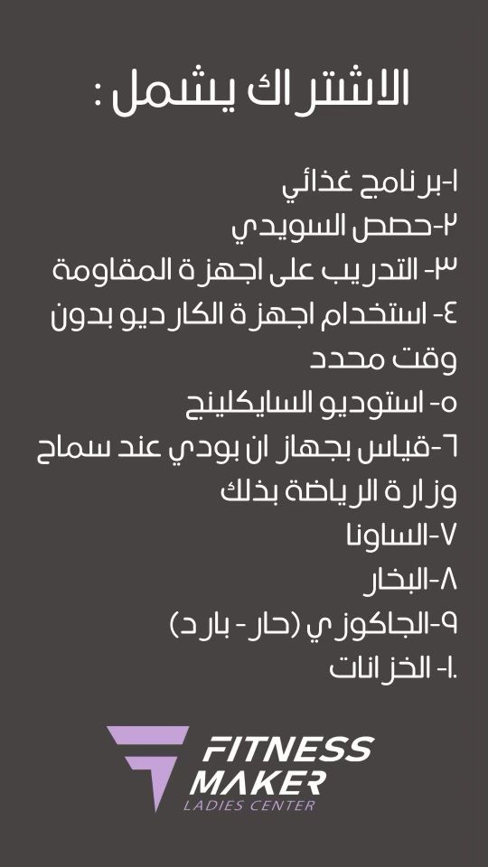• استخدام أجهزة الكارديو بدون وقت محدد
