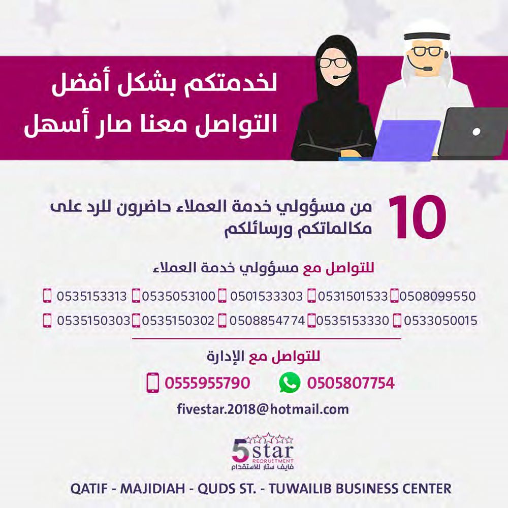 إضافة إلى 10 من مسؤولي خدمة العملاء حاضرون للرد على مكالماتكم ورسائلكم