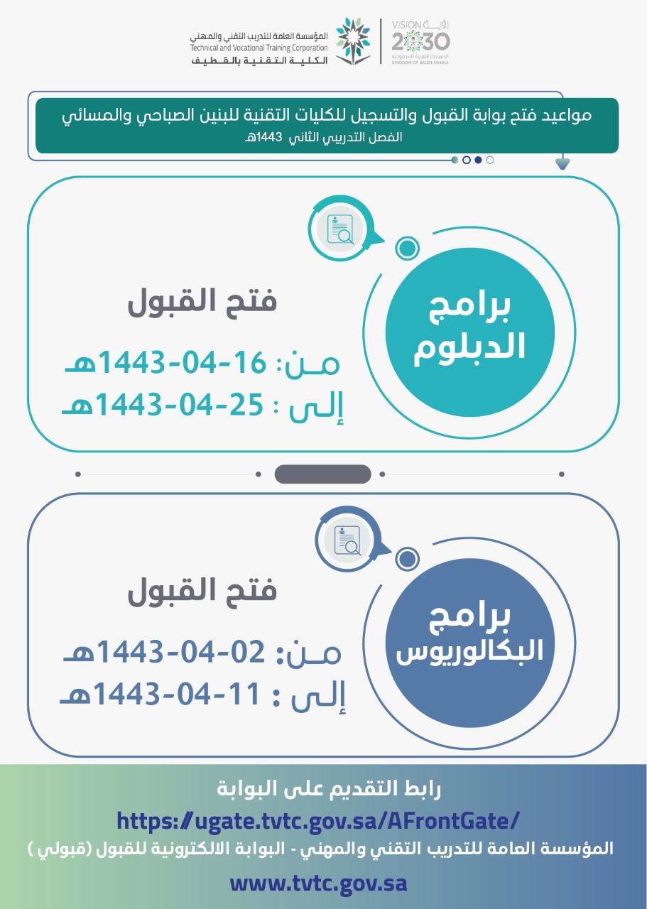 الكلية التقنية بمحافظة القطيف تعلن عن بدء التسجيل في برنامجي البكالوريوس الدبلوم