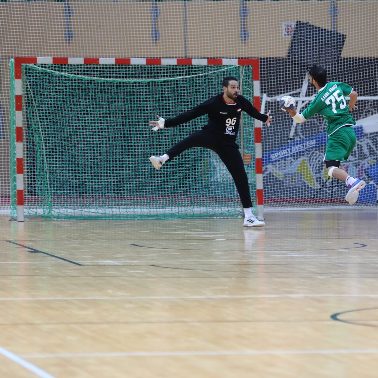 وسيطر الفراعنة على مجريات المباراة على الرغم من محاولات الأخضر لمجاراة أحد عمالقة كرة اليد في العالم، لينتهي الشوط الأول بتقدم المنتخب المصري بفارق 11 هدفًا، في ظل تألق لافت من جانب يحيى الدرع، بنتيجة 16-5.