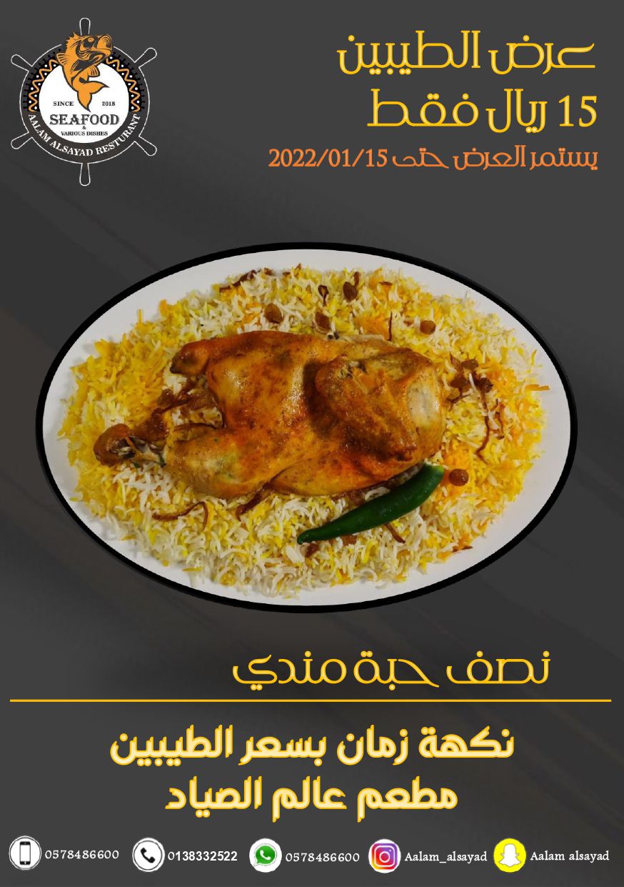 المطعم مفتوح لوجبتي ”الغذاء والعشاء“