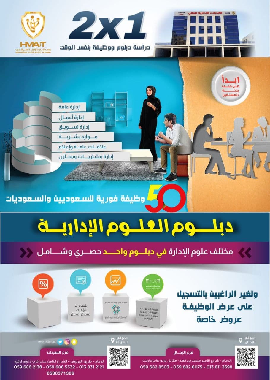 عرض 2 في 1 دراسة دبلوم ووظيفة في نفس الوقت في معهد القدرات الإدارية العالي للتدريب