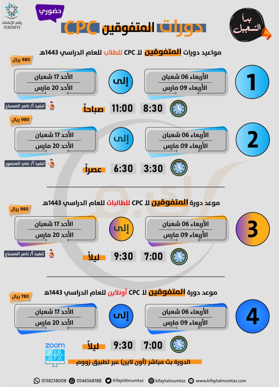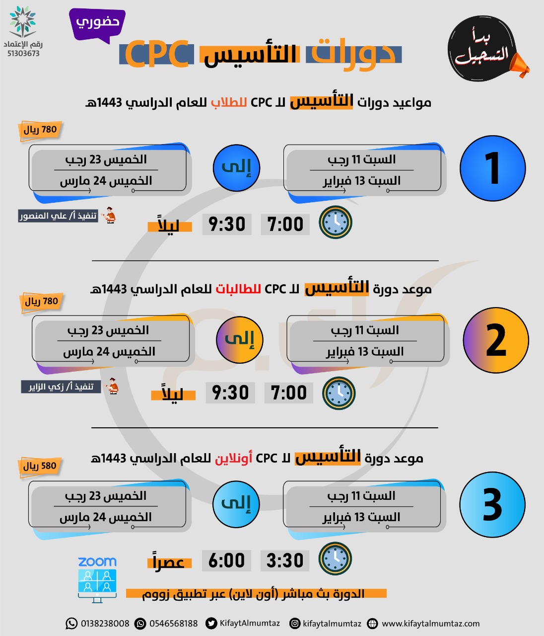 مركز مبدأ كفاية الممتاز للتدريب يعلن عن بدء التسجيل في دورات الـ ”CPC“ بإشراف الأستاذ ناصر المسباع .