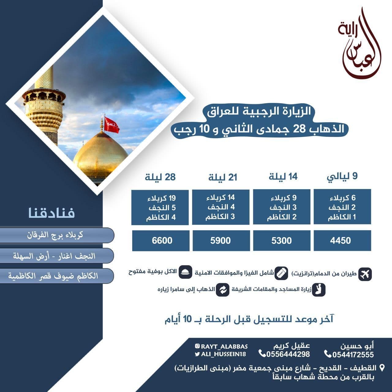 تعلن حملة راية العباس عن رحلاتها للعراق لشهر رجب «الزيارة الرجبية»