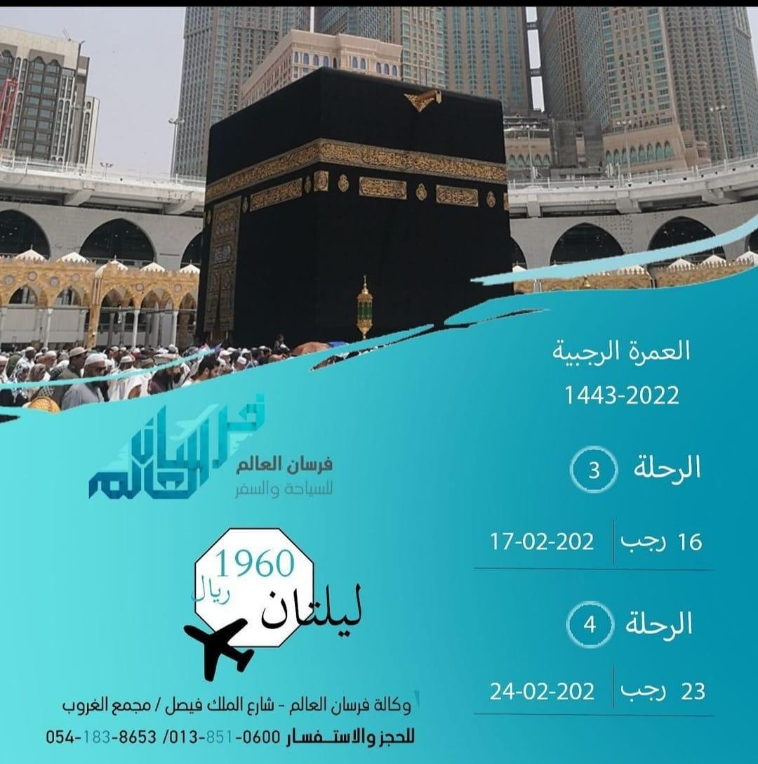 رحلات العمرة الرجبية من وكالة فرسان العالم