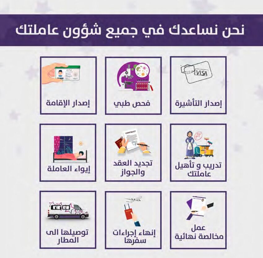 شاهد كيف فايف ستار للاستقدام يساعدك في جميع شؤون عاملتك