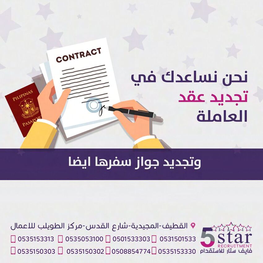 شاهد كيف ”فايف ستار“ للاستقدام يساعدك في جميع شؤون عاملتك