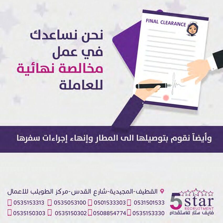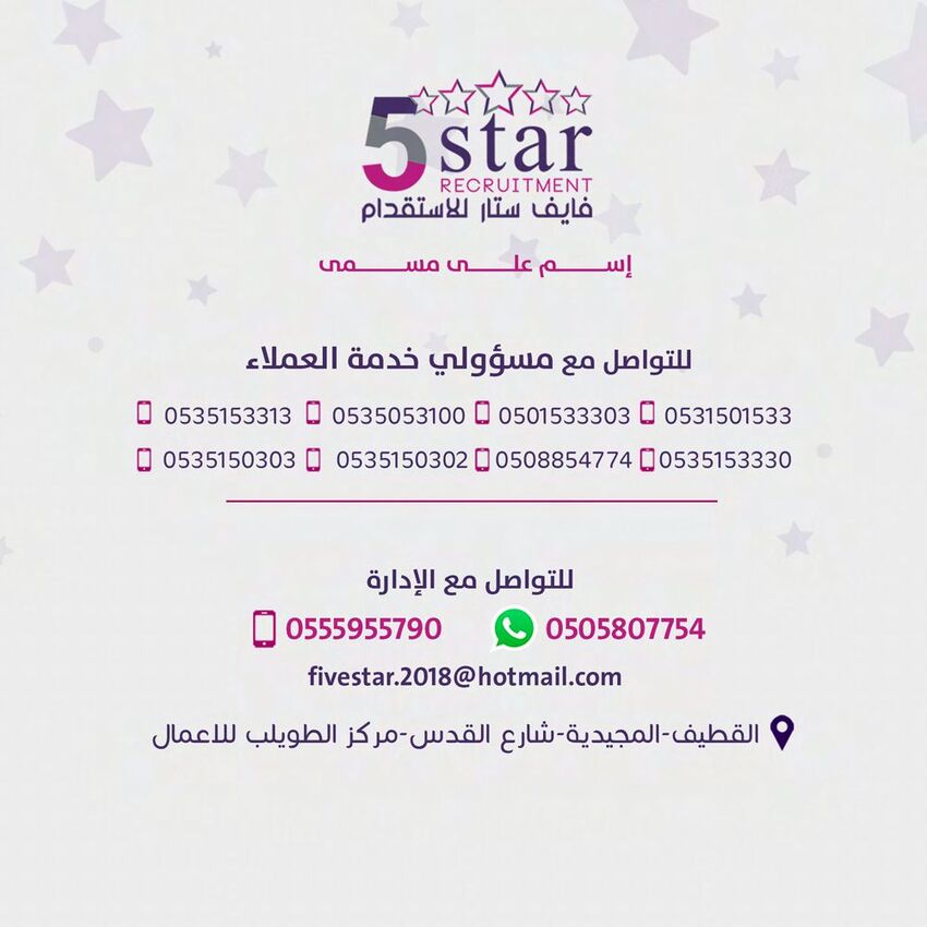 شاهد التميز وتعرف أكثر على فايف ستار للاستقدام