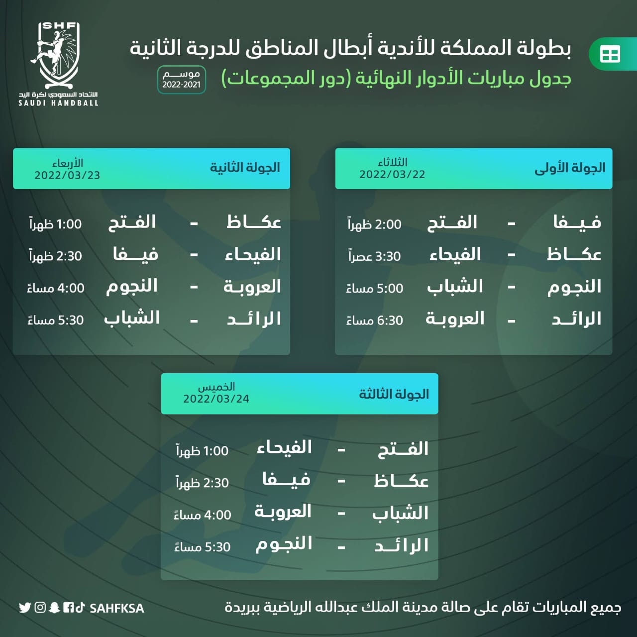 الأدوار النهائية لبطولة المملكة لأندية الدرجة الثانية تنطلق غدًا في بريدة