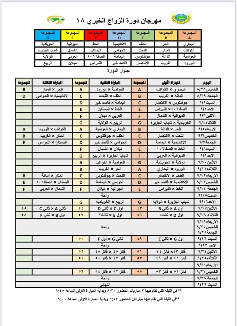 تنطلق يوم غد الخميس، فعاليات النسخة الثامنة عشرة من "مهرجان دورة الزواج الخيري لكرة القدم.