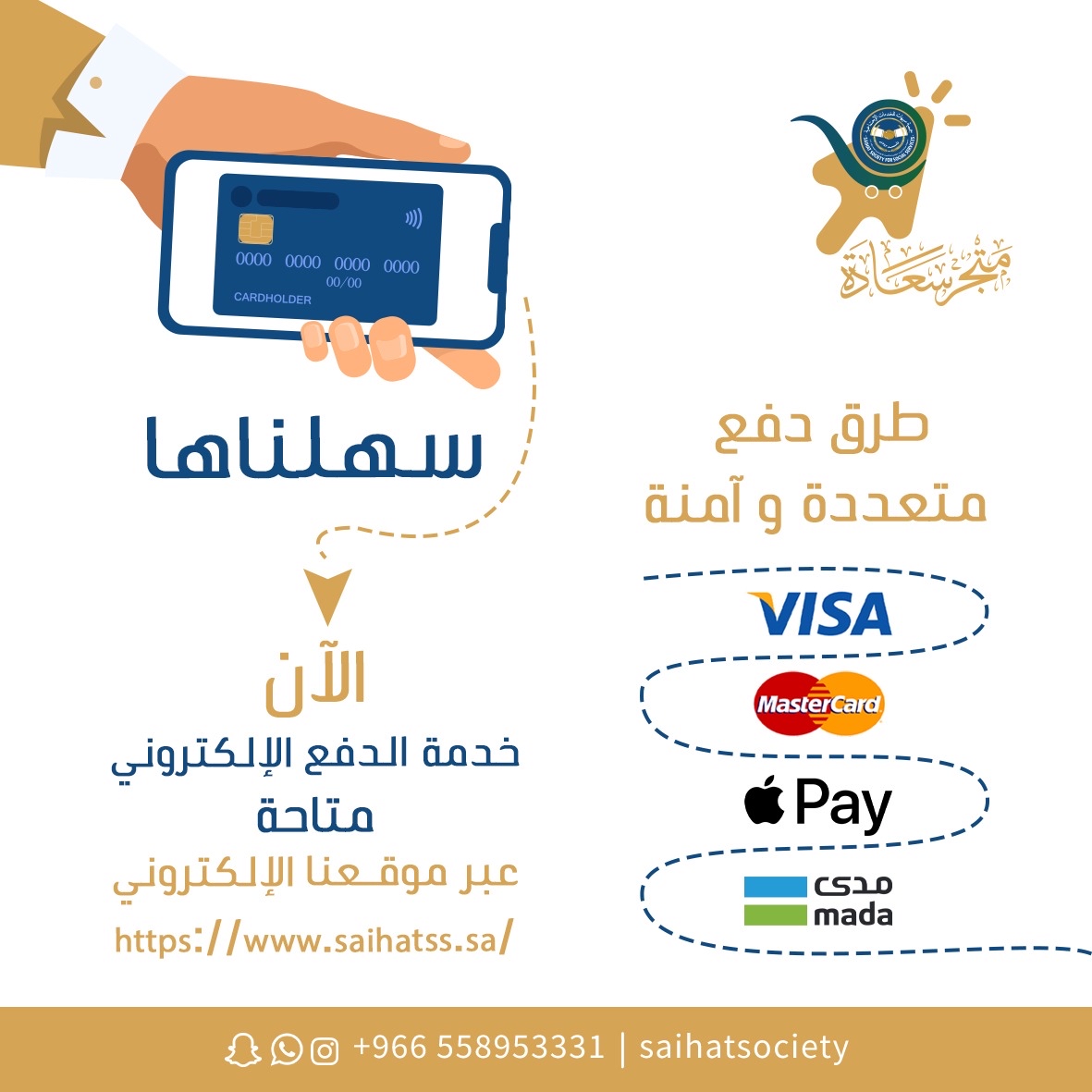 وسيتمكن المجتمع من خلال الموقع التبرع عن طريق «متجر سعادة اونلاين» الذي يتيح اختيار البرامج ودعمها بسهولة تامة من خلال الدفع الالكتروني عبر «مدى، فيزا، مستر كارد، apple pay».