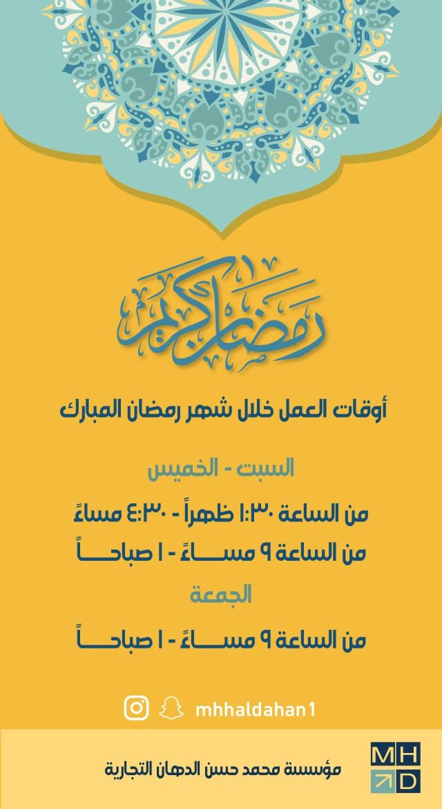 علمًا بأن أوقات العمل خلال شهر رمضان المبارك