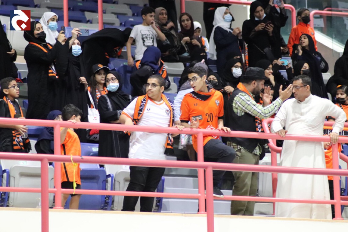 استمرت الجماهير الرياضية بتسجيلها حضوراً كبيراً وملئ جنبات صالة مدينة الأمير نايف بن عبدالعزيز الرياضية بالقطيف، وسط تفاعل ومؤازرة لفرقها طيلة فترات المباراة.