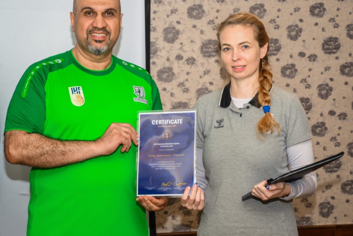 وسلم علي العليوات عضو مجلس إدارة الاتحاد السعودي لكرة اليد في مقر إقامة الدورة في مدينة الخبر بحضور الدكتورة إيلونا هابكوفا، والدكتور نبيل طه، المحاضرين المعتمدين شهادات التخرج من الدورة وهم: عبدالمنعم آل هلال، هاشم الشرفاء، خالد البريدي، فرج آل إسماعيل، عبدالرسول الجزيري، بشير القريناوي، صلاح العلي.
