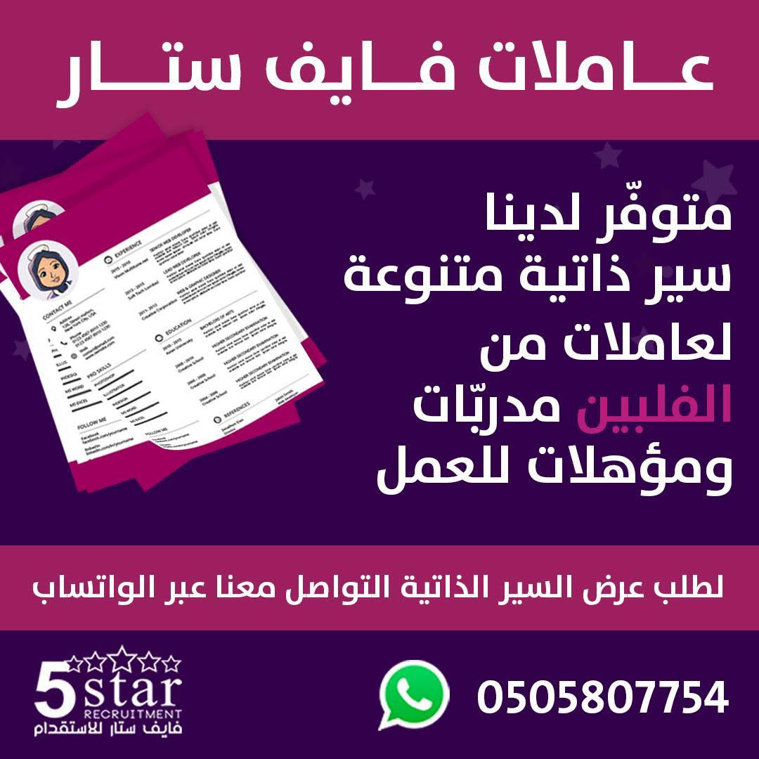 سير ذاتية متنوعة لعاملات من الفلبين لدى ”فايف ستار“