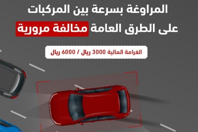 6 آلاف ريال غرامة المراوغة بسرعة بين المركبات