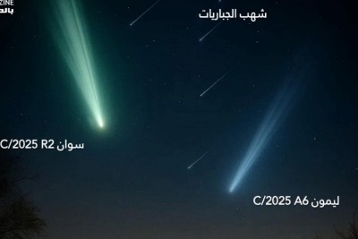 كشف رئيس الجمعية الفلكية بجدة، المهندس ماجد أبو زاهرة، أن العالم على موعد مع ليلة فلكية استثنائية ونادرة أواخر شهر أكتوبر الجاري. وقال سيجتمع عرض سماوي ثلاثي يضم مِذْنَبين لامعين، وذروة زخة شهب الجباريات، في ليلة حالكة السواد مع وجود القمر في طور المحاق، مما يهيئ فرصة مثالية للرصد بالعين المجردة والتصوير الفوتوغرافي. وأوضح أبو زاهرة أن نجمي هذا الحدث هما المذنبان ”سوان C/2025 R2“ و”ليمون C/2025 A6“، اللذان تم اكتشافهما هذا... |