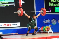 شاهد.. 3 محاولات ناجحة في رفع الأثقال لـ ”سراج“ في حضور وزير الرياضة