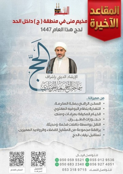 ”حملة التيسير“ الإرشاد الديني بإشراف الشيخ سعيد الخويلدي 🛑 مميزاتنا: الإرشاد الديني المتميز السكن الراقي بمكة التغذية بوفيه مفتوح خيام مكيفة بعرفات ومنى ... |