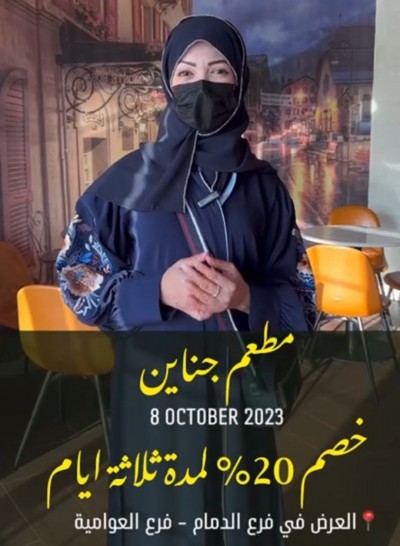 خصم 20% لمدة ثلاثة أيام في مطعم ”جناين“