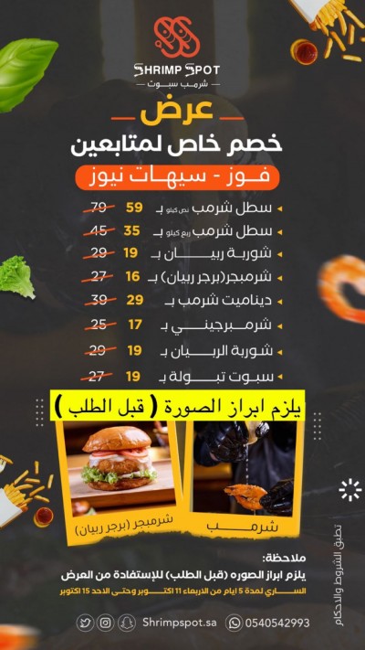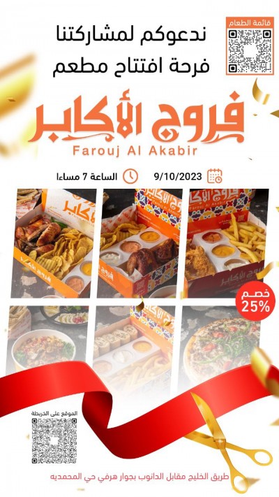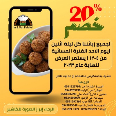 خصم 20% على كامل الفاتورة يشمل فرع العوامية وبحرية سيهات لمدة ثلاثة أيام