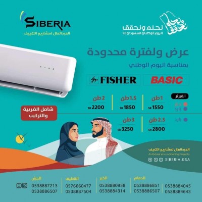 العبدالعال لمشاريع التكييف يقدم عروضاً حصرية عرض ولفترة محدودة بمناسبة اليوم الوطني نحلم نحقق | اليوم الوطني السعودي 93 BASIC | FISHER الفيرتر حار - بارد | 1 طن ب 1550ريال | 1,5 طن ب 1850 ريال | 2 طن ب 2200 ريال بارد | 2,5 طن ب 2800 ريال | 3 طن ب3250 ريال ... |