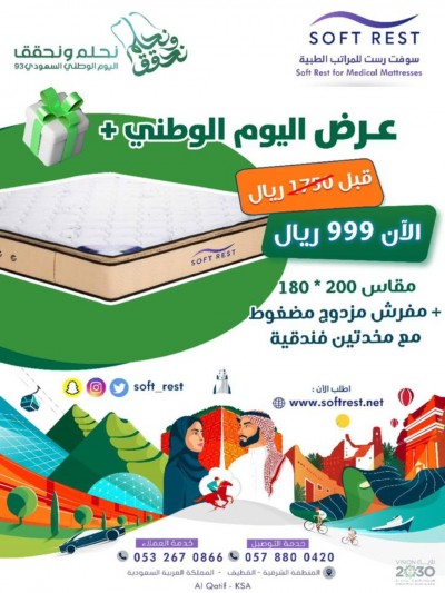 ”سوفت رست“ للمراتب الطبية خصومات من 20 ٪ إلى 50 ٪ الانستغرام: https://instagram.com/soft_rest السناب: https://t.snapchat.com/djF31Q6O موقعنا: حي الشاطي - شارع حمزة بن عبد المطلب.... |