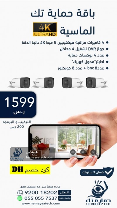 ”مؤسسة حماية تك الأمنية“ خيارك الصحيح لحماية منزلك ومنشأتك وسيارتك وبأحدث كاميرات المراقبة والأنظمة الأمنية العرض يستمر لـ 30 اغسطس كود الخصم: DH للتواصل: https://hemayyatech.com موقعنا: ... |