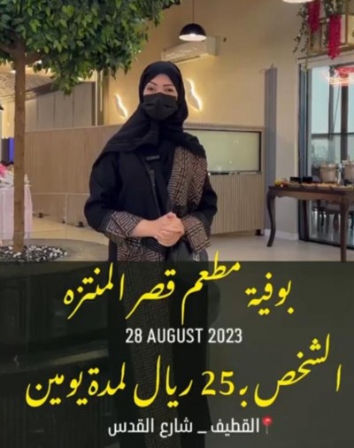 مطعم”قصر المنتزه“ الأطفال أقل من5 سنوات مجاناً الأطفال أقل من 12 سنة بنص السعر من يوم الخميس إلى السبت البوفية بـ 30 ريال 📍موقعنا: https://maps.app.goo.gl/KgcTTCExMtwFpeLG6 الانستقرام: ... |