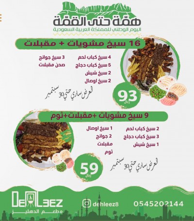”مشويات الدهليز“ مشاوي مع مقبلات بـ 59 ريال مشاوي مشكلة مع مقبلات بـ 93 ريال العرض حتى نهاية شهر سبتمبر 📍موقعنا: https://maps.app.goo.gl/xNieGYbxdtYeW4sw6 |