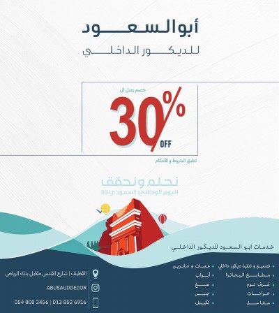 ” أبو السعود للديكور الداخلي“ خبرة أكثر من 40 سنة بيتك متكامل ”دهانات - نجارة - جبس - مطابخ - واكثر... " خصم يصل إلى 30 ٪ بمناسبة اليوم الوطني يستمر العرض لـ 30 سبتمبر الانستغرام: https://instagram.com/abusauddecor سناب شات: ... |